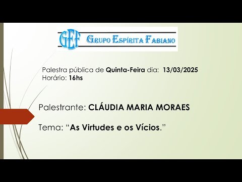 CLAUDIA MARIA MORAES - TEMA: "AS VIRTUDES E OS VÍCIOS"