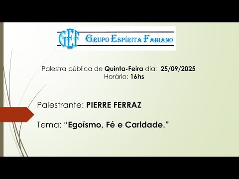 PIERRE FERRAZ - TEMA: "EGOÍSMO, FÉ E CARIDADE."