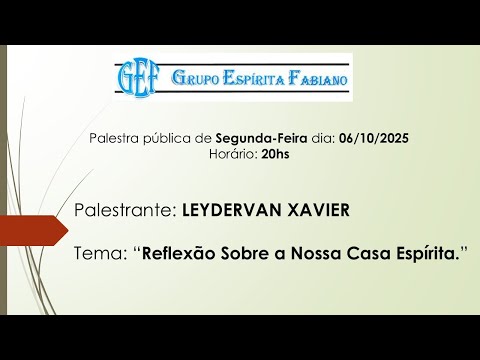 LEYDERVAN XAVIER - TEMA: " REFLEXÃO SOBRE A NOSSA CASA ESPÍRITA."